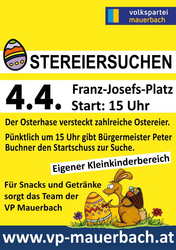 Die Kinder und ihre Eltern treffen sich bei den Spielgeräten des Spielplatzes und pünktlich um 15 Uhr gibt dann Bürgermeister Peter Buchner das GO zur großen Ostereiersuche.